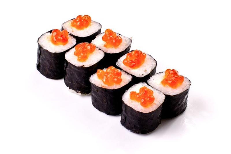 Состав: Суши рис, нори, сливочный сыр, икра лососевая